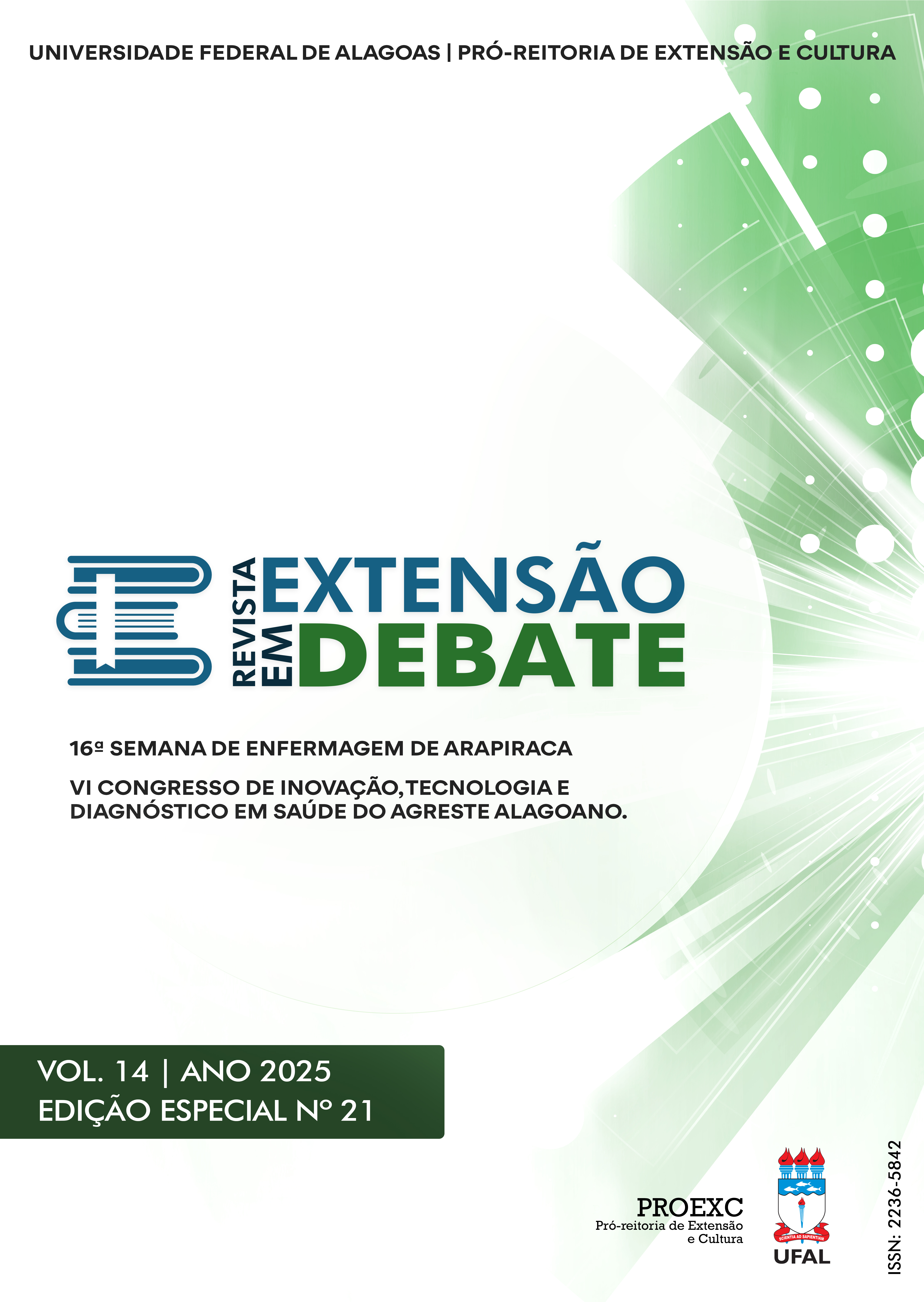 Estudos, pesquisas e relatos de experiências de estudantes da UFAL e de outras Ies, apresentados nesses dois congressos, foram compilados no formato de resumos expandidos para serem divulgados nesta edição especial relacionada à área temática de Extensão “Saúde”, intitulada “Anais da Enfermagem”.